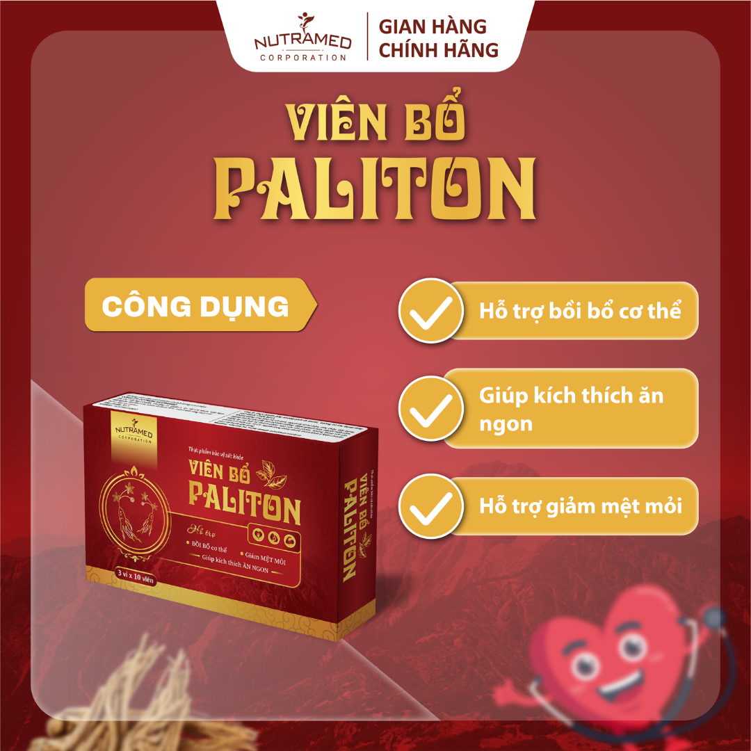 VIÊN BỔ PALITON - Hỗ trợ bồi bổ cơ thể, giảm mệt mỏi, k.í.c.h t.h.í.c.h ăn ngon THÀNH PHẦN ️Đương quy (Radix Angelicae sinensis). Thục địa (Radix Rehmanniae glutinosae praeprata). Bạch thược (Radix Paeoniae