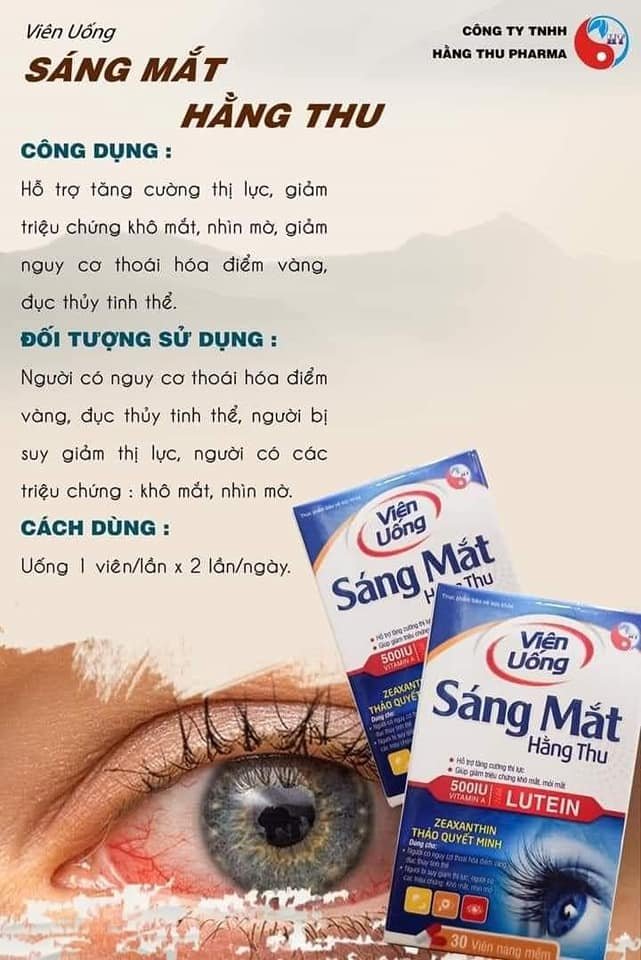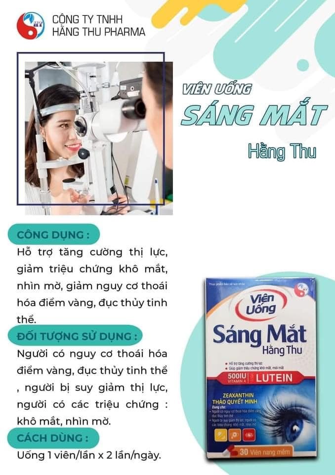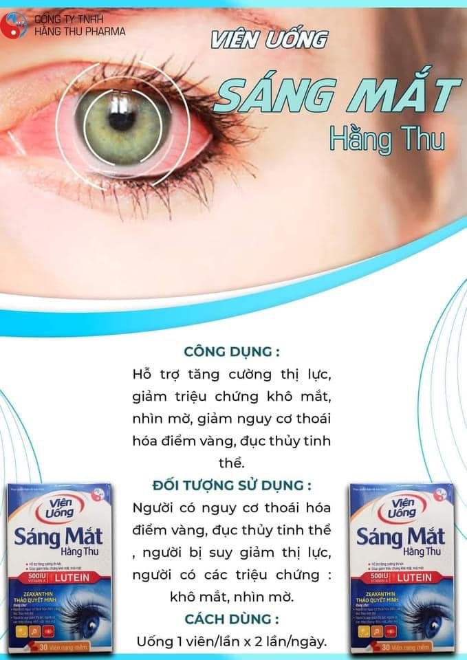 Hằng Thu Pharma thấu hiểu Đôi mắt cửa sổ mở ra thế giới. Khi cửa sổ này trở nên mờ, nhìn không còn rõ, bạn thể cảm thấy bị cô lập. Vậy nên đã cho ra sản phẩm . Dành cho Người có nguy cơ thoái hóa điểm vàng, đục thủy tinh thể, bị suy giảm thị lực, có các triệu chứng khô mắt, nhìn mờ