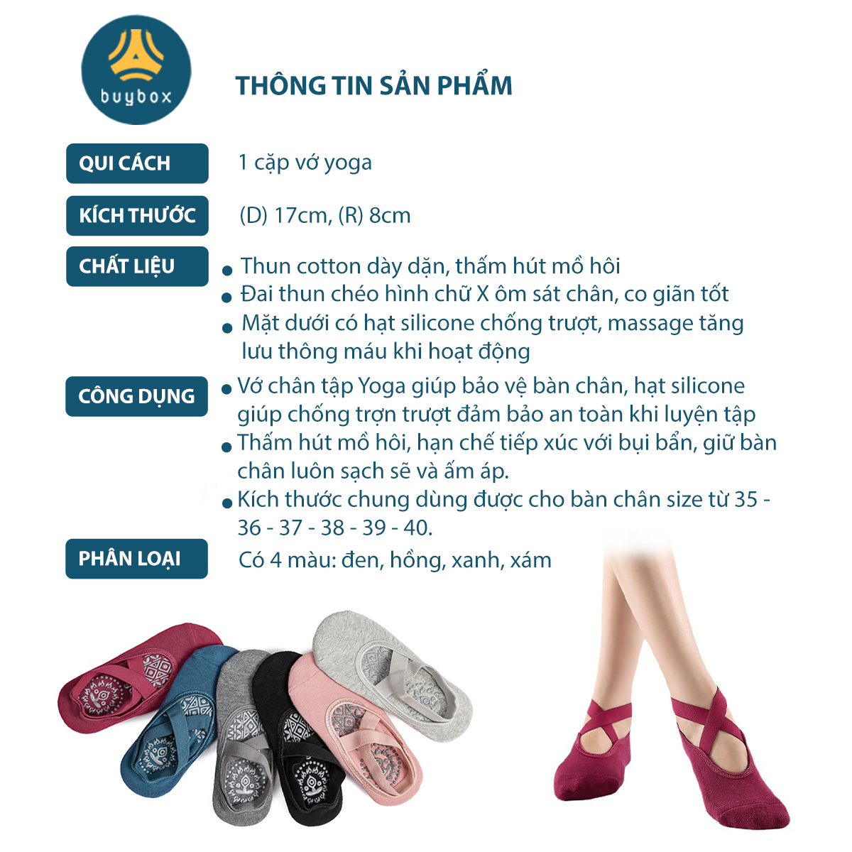 ✨Vớ chuyên dùng cho yoga, pilates, nhảy múa có hạt silicone tăng độ bám, quai chéo chữ X chống tuột - Buybox - BBPK283