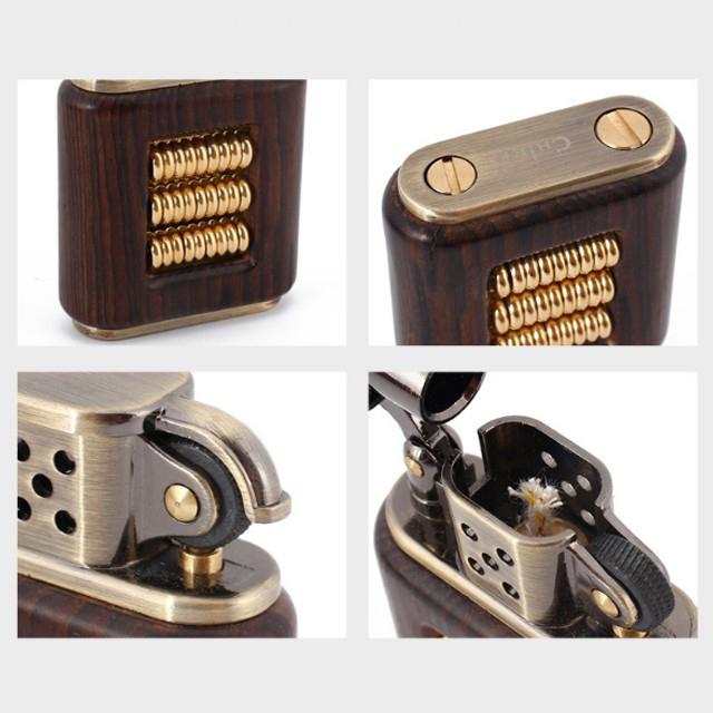 ✨Vỏ Hột Quẹt Bật Lửa Chief CF 217 Gỗ Họa Tiết Bánh Xe - Dùng Xăng Bấc Đá