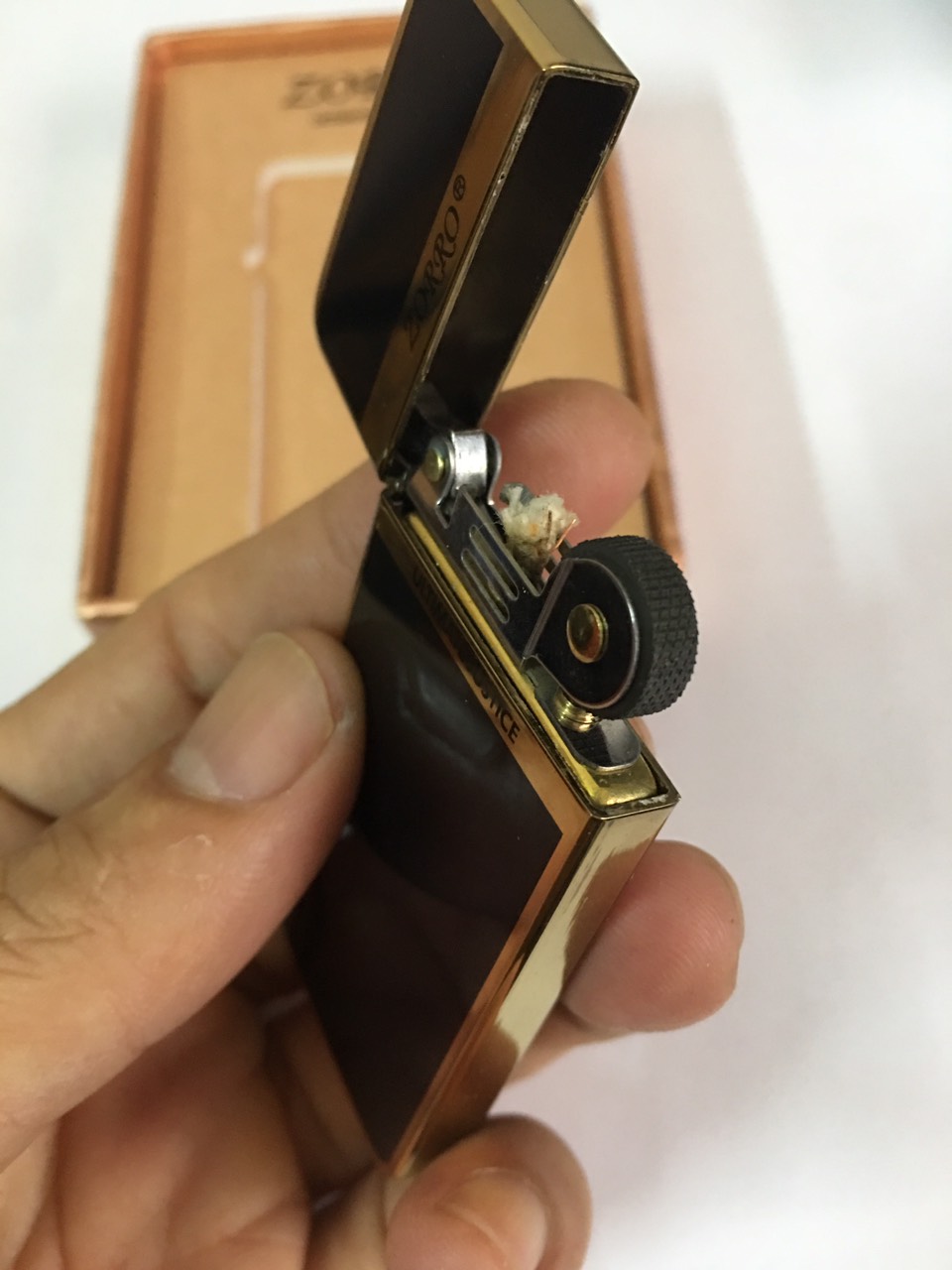Hộp quẹt bật lửa xăng đá siêu mỏng Zorro ZC5 sơn mài đen viền vàng #batluadocla #batluadep #zorro