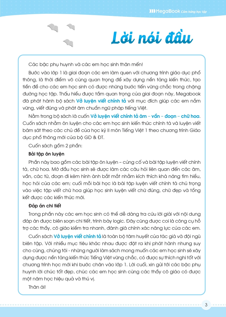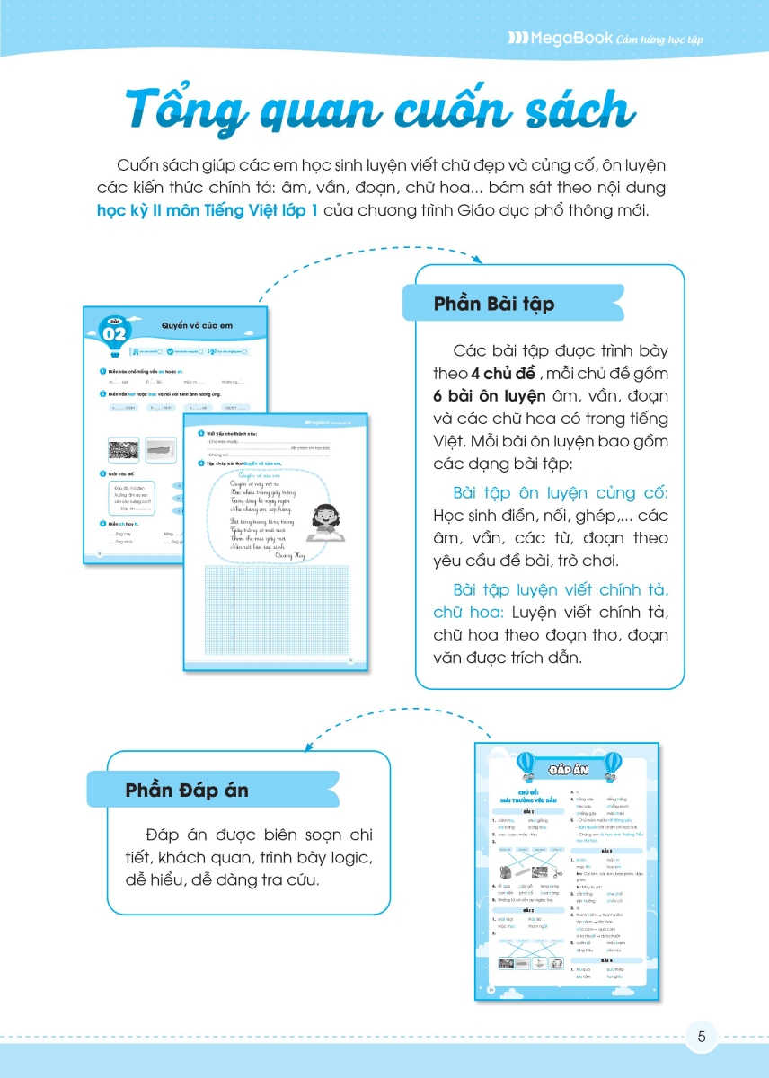 Cuốn sách Vở luyện viết chính tả âm - vần - dấu thanh không chỉ là một người bạn đồng hành cùng con trong những năm đầu đời lớp 1 mà còn là một nguồn tham khảo của giáo viên trong công tác giảng dạy và học tập.