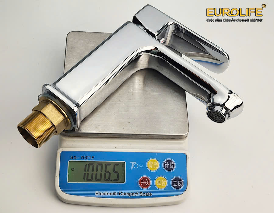 Vòi Lavabo nóng lạnh Đồng mạ Chrome Eurolife EL-8002 ️Thương hiệu Eurolife Việt Nam ️ Chất liệu : Sản phẩm được đúc trọng lực với hợp kim đồng 61% , mạ Chrome và Niken (Ni -10micro , Cr-0.3micro). Độ bóng sáng cao và không bị dính két vết bẩn. ️ Màu sắc : Trắng bạc ( Crôm Bóng sáng) ️Trọng lượng : 1006Grs ️Bảo hành : 5 năm ️Sản phẩm chất lượng cao, không bong tróc lớp men (lớp mạ) khi sử dụng trong thời gian dài. Tuổi thọ lớp men lên tới 20 năm. CHI TIẾT SẢN PHẨM =================== CHẤT LIỆU AN TOÀN ️ Thân vòi được đúc từ Đồng H61, đạt tiêu chuẩn Châu Âu cho vật liệu. An toàn cho người sử dụng và thân thiện với môi trường. MẠ CHROME 5 LỚP ️ Thân vòi được mạ 5 lớp với 1 lớp mạ Đồng, 2 lớp mạ Kẽm, 1 lớp mạ Niken bên trong và lớp Chrome bên ngoài với độ dày lên tới 11um, giúp vòi luôn sáng bóng và không bị nổ xi, bong tróc lớp mạ khi sử dụng ( Đã được Quatest 3 chứng nhận). THIẾT KẾ ƯU VIỆT ️ Thân vòi với chiều cao, tạo cảm giác thoải mái, phóng khoáng khi sử dụng. Thuận tiện khi rửa mặt và xả nước. CÔNG NGHỆ TẠO BỌT DÒNG CHẢY ️ Đầu vòi với thiết kế dòng nước đan chéo xen kẽ nhau, tạo bọt, chống văng bắn và tiết kiệm nước. ️ Đầu vòi có thể tháo rời để vệ sinh lưới lọc bên trong khi cần thiết. ️ Áp lực nước mạnh mẽ, không văng bắn khi sử dụng. ️ Thân vòi cao với thiết vuông, tạo cảm giác khỏe khoắn và sang trọng cho phòng tắm. ️ Tay cầm thiết kế vuốt vuông, dễ cầm nắm, giúp đóng mở nguồn nước dễ dàng. Logo Eurolife được in trên tay cầm cùng tem điện tử thông minh chống hàng giả, có thể truy xuất nguồn gốc được dán sau lưng sản phẩm. BÁT GẮN VÀ DÂY KẾT NỐI ️ Bát gắn bằng Đồng thau bền bỉ, Ren gắn 32mm, phù hợp với các loại lỗ chờ của Lavabo. Bát siết có đường kính 44mm. ️ Chiều dài ống gắn 46mm, có thể gắn cho nhiều mặt đá dày. ️ Bát gắn bằng chắc chắn và cứng cáp cho việc lắp đặt, đi kèm 2 roong cao su đệm bên trên và bên dưới thành chậu. ️ Dây cấp dài 50cm chịu nhiệt cao. Thân dây bằng Inox, 2 đầu ren được đúc bằng Đồng thau bền bỉ. Hai dây hoàn toàn có thể chịu nhiệt độ cao lên đến 100 độ C. Ống dẫn được làm từ cao su tổng hợp EDPM .Cao su EPDM có dãy nhiệt độ làm việc từ -50° C tới 120°/ 150°C (- 60° F tới 250°/ 300°F). Tính chất nổi bật của loại vật liệu EPDM là nhờ khả năng kháng được rất tốt với các loại dung môi, axit loãng, kiềm loãng, hơi nước, ánh sáng mặt trời, tác động của tia ozon và làm việc được trong môi trường nhiệt độ cao. TRÁI TIM SẢN PHẨM ️ Eurolife sử dụng van Ceramic JJ - thương hiệu nổi tiếng và chất lượng cao của Đài Loan cho các sản phẩm. Van Ceramic với 160.000 lần sử dụng (tương ứng với 30 lần sử dụng trên ngày trong suốt gần 15 năm liên tục). Van lớn được thiết kế độc quyền bởi Eurolife cho dòng chảy tối đa 18l/min với áp suất 0.5MPA, giúp van chảy cực mạnh kể cả khi áp lực yếu. THÔNG SỐ SẢN PHẨM ️ Trọng lượng thực tế của sản phẩm : 1006 Grs BẢN VẼ KỸ THUẬT ĐÓNG GÓI SẢN PHẨM ️ Bộ sản phẩm đầy đủ bao gồm : 1- Thân vòi Lavabo 2- Bộ 2 dây Inox SUS 304, 1 bát lắp đặt, 2 roong cao su 3- Sách hướng dẫn sử dụng kèm thẻ bảo hành Sản phẩm của Eurolife đã được Trung tâm kỹ thuật tiêu chuẩn đo lường Chất lượng 3 (Quatest 3) phân tích thử nghiệm và chứng nhận: ️ Độ dày lớp mạ lên tới 11um. ️ Tỉ lệ vật liệu đạt tiêu chuẩn