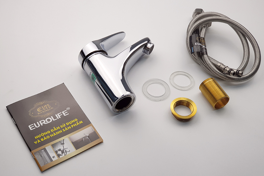 • Bộ sản phẩm được đóng gói trong túi vải cotton, hộp màu riêng của Eurolife. Bộ sản phẩm đầy đủ bao gồm : Thân vòi Lavabo, 1 bát gắn, 2 roong cao su, 2 dây cấp 60cm, 1 phiếu bảo hành chính hãng.