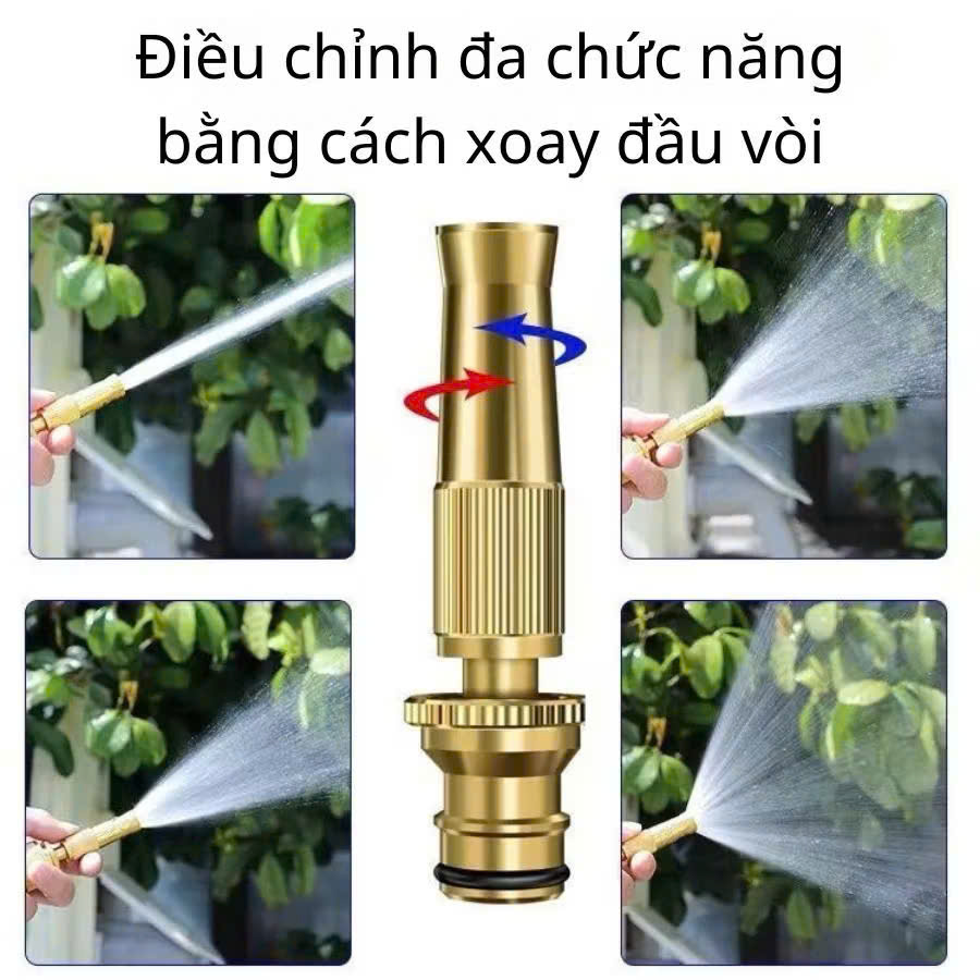 - Đầu vòi đa năng: Vòi có thể tùy chỉnh chế độ phun như phun rộng, phun tia mạnh, hoặc phun tập trung, phù hợp với nhiều mục đích sử dụng như tưới cây, rửa xe, rửa nhà cửa, hoặc vệ sinh chuồng trại.