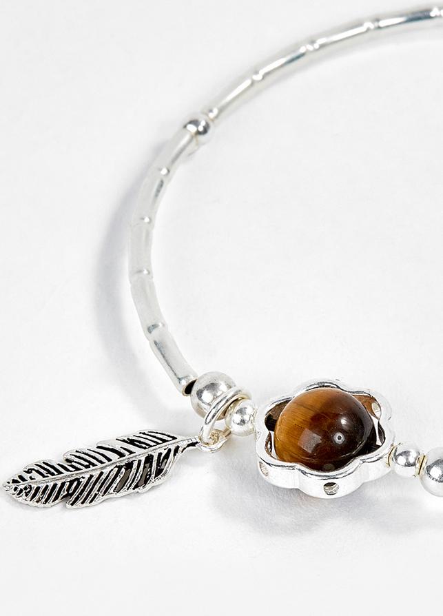 Vòng Bạc Hạt Đá Mắt Hổ Vàng Nâu Phối Charm Lá Ngọc Quý Gemstones