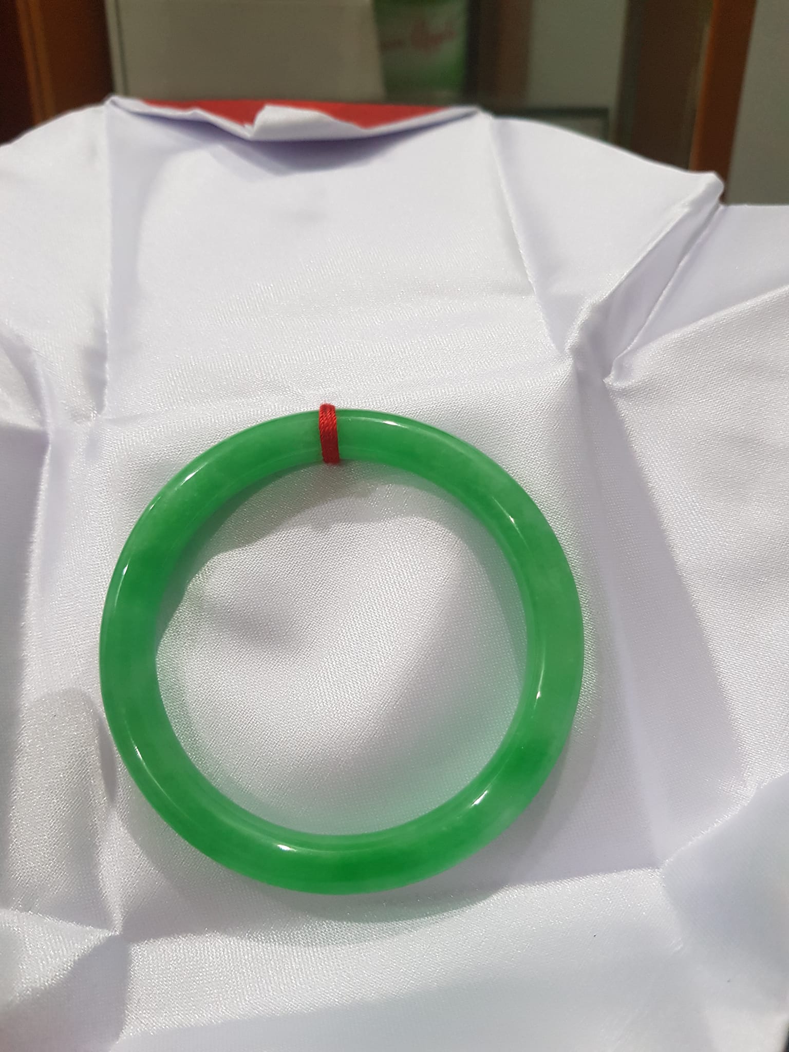 ✨Vòng cẩm thạch Đ Lý 52mm x dầy 7,8mm Vòng màu xanh lá tươi Nữ mệnh Mộc mệnh Hỏa 52kg - 56kg đeo ạ