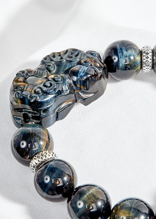 Vòng tay đá mắt hổ phối tỳ hưu Ngọc Quý Gemstone Những ý nghĩa và công dụng mà Vòng tay đá mắt hổ mang lại Đá mắt hổ thuộc dòng thạch anh, trong thành phần