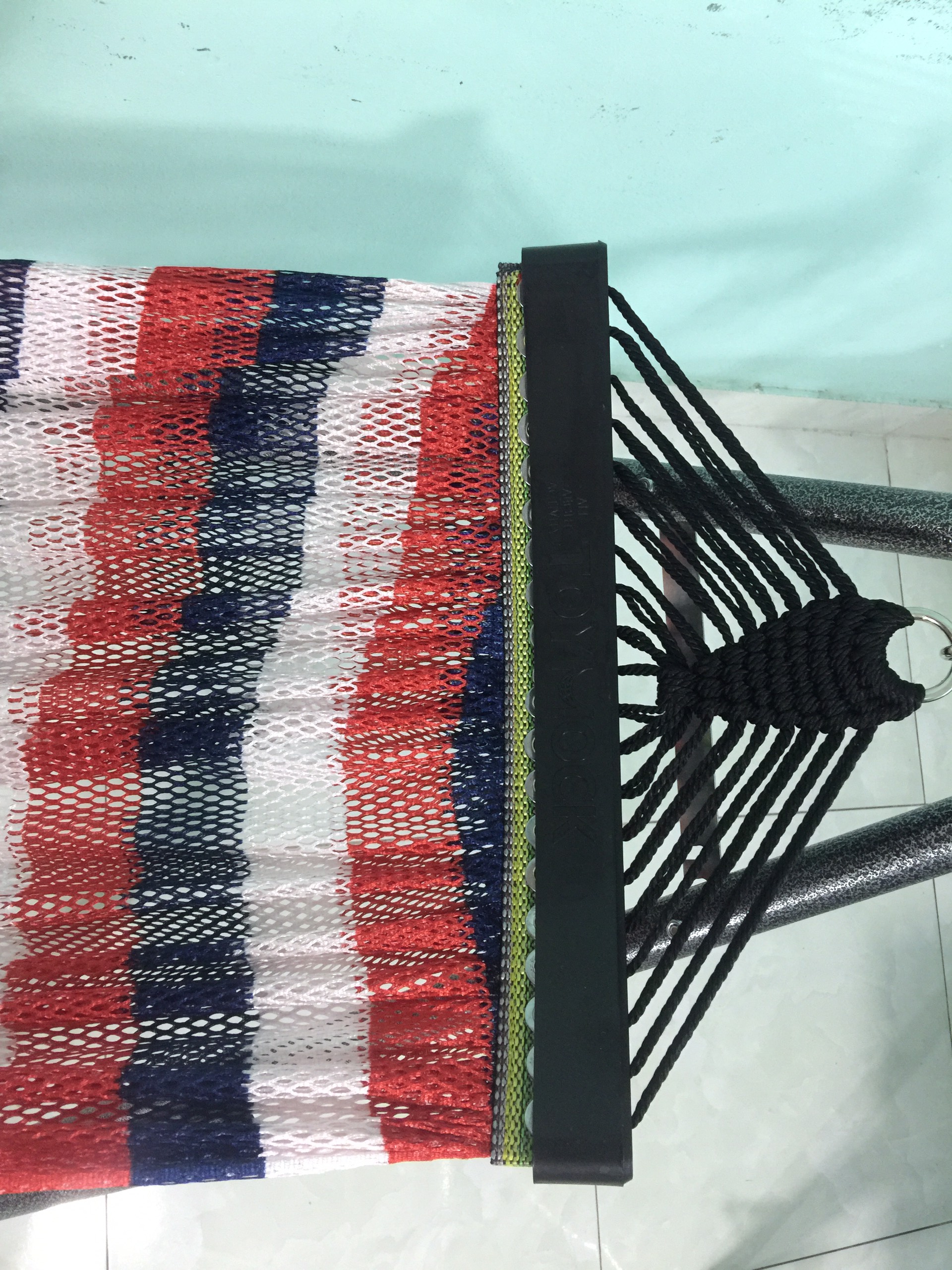 Ống thép, sơn tĩnh điện. đường kính 27.0mm, chiều dày 0.9mm. 4 thanh chống uốn cong, thẩm mỹ, thông thoáng, an toàn. Võng lưới sợi 100% polyester, mềm mịn, có độ co giãn, lưới Xuất