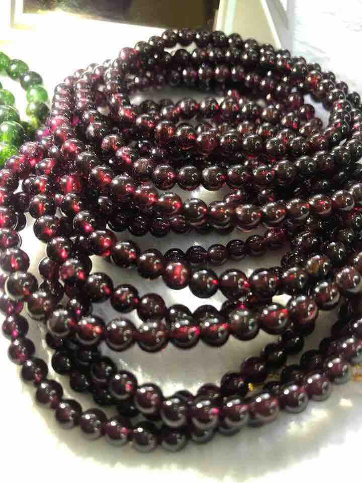 Vòng Tay Chuỗi Nữ Đá Garnet Đỏ Rượu quấn 3 vòng size hạt 4mm các Chị Em Phụ Nữ đeo lên tay ạ