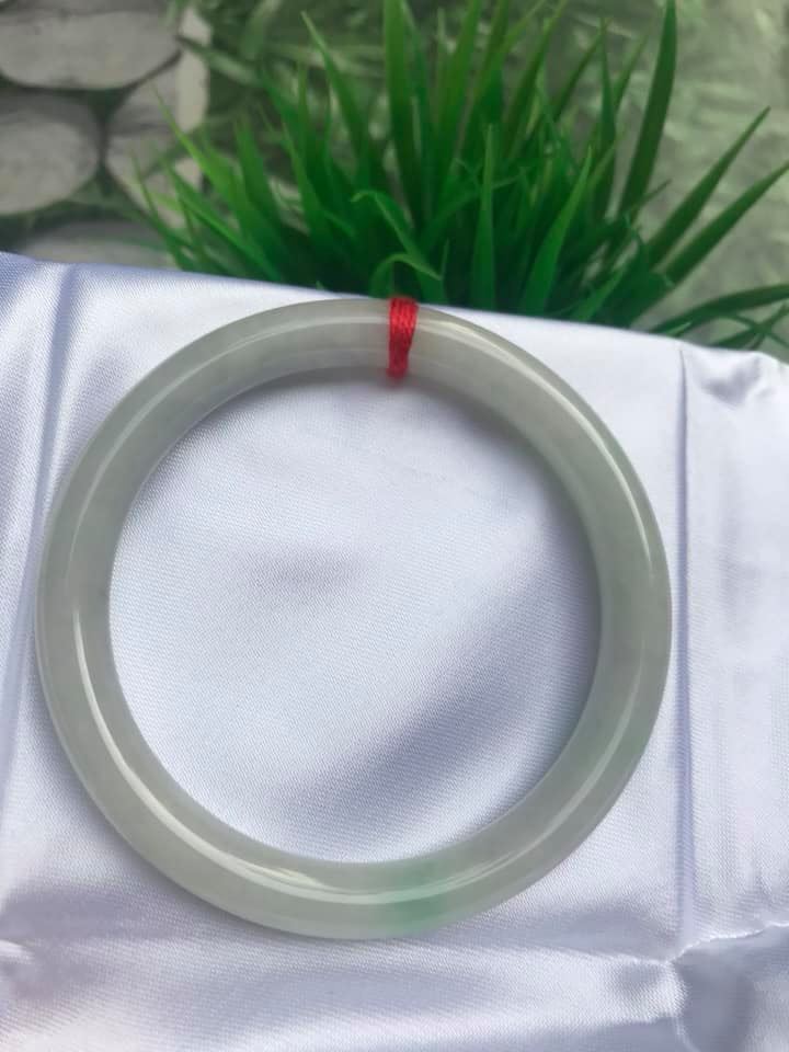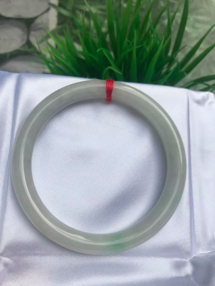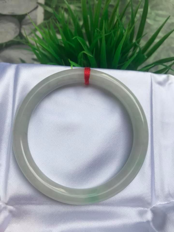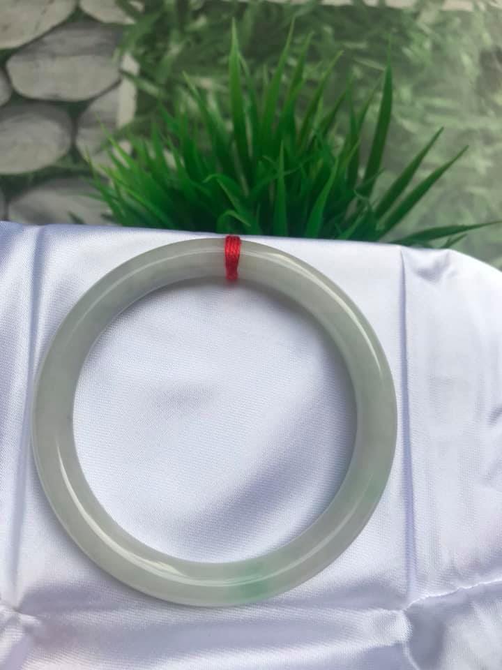 Vòng Cẩm Thạch tự nhiên trắng lý bóng sịn đẹp Ni 54mm x cọng 8mm nữ đeo vòng tay sang ạ #54mm