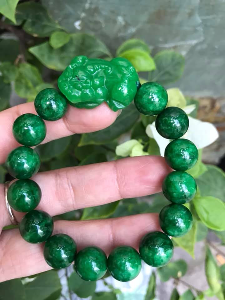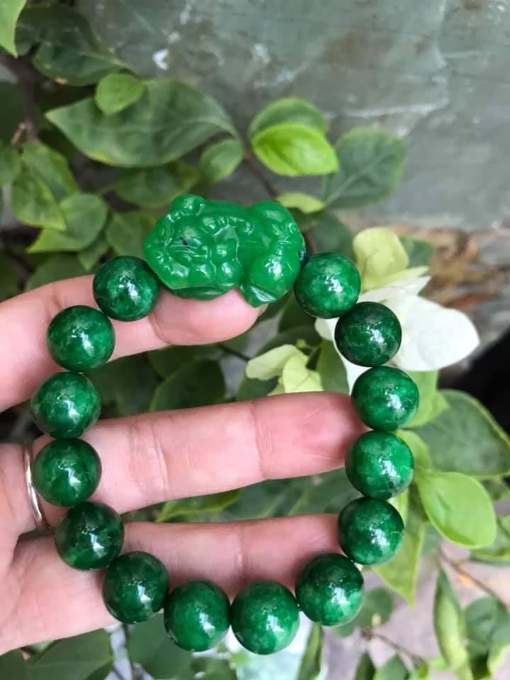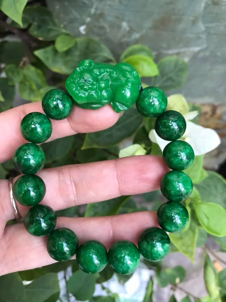 VÒNG TAY ĐÁ CẨM THẠCH TỲ HƯUSIZE 12MM AC MỆNH MỘC HOẢ ĐEOMÀU XANH CẨM THẠCH ĐẬM ĐẸP Ạ...