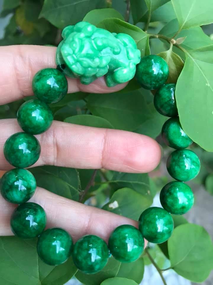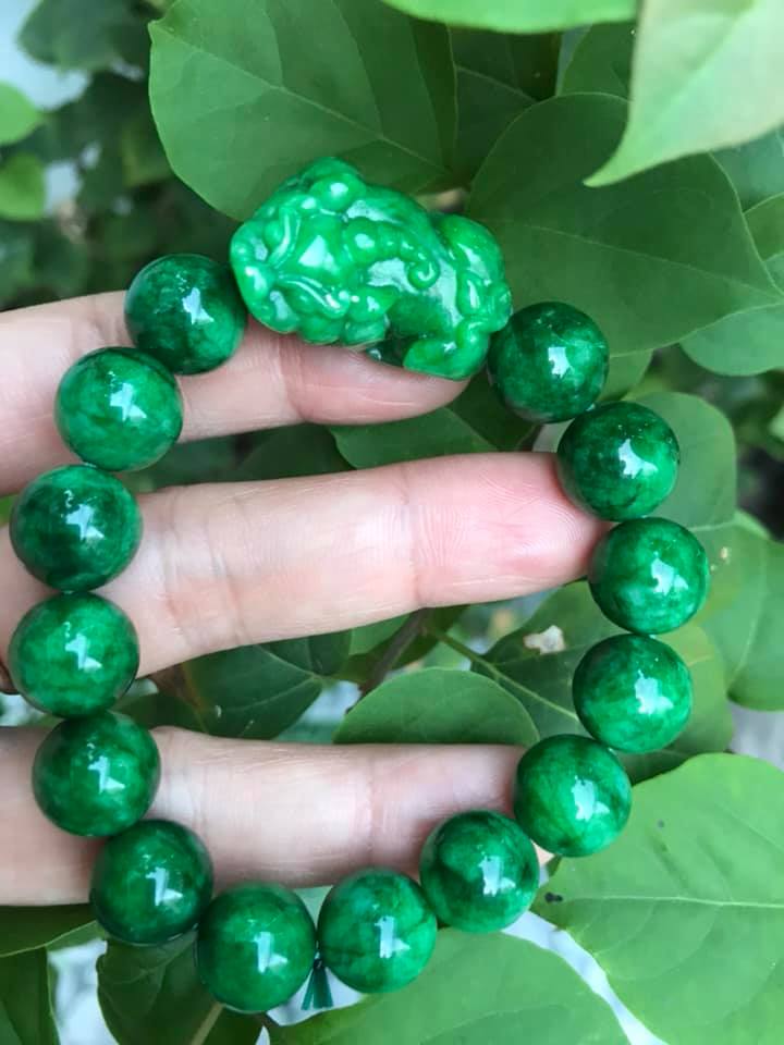 ✨VÒNG TAY ĐÁ CẨM THẠCH TỲ HƯU SIZE 12MM AC MỆNH MỘC HOẢ ĐEO MÀU XANH CẨM THẠCH ĐẬM ĐẸP Ạ