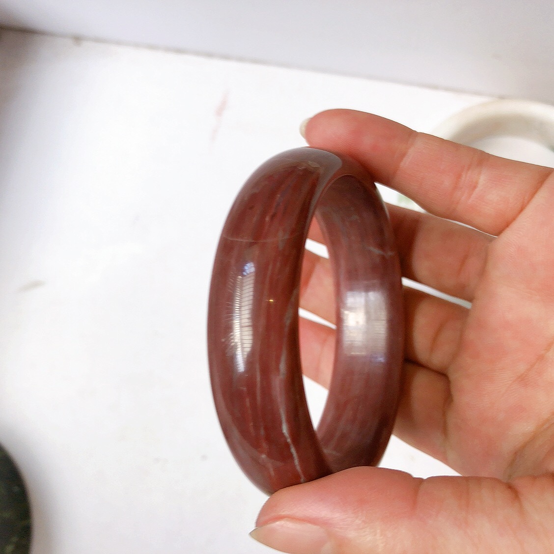 Vòng tay Nữ Bản Hẹ Mới Đá Mã Não Bông Tuyết Hồng nhẹ trắng trong bóng quá đẹp luôn ạ Ni 53mm x Cao 11mm x dầy 7mm Nữ Cân nặng 52kg - 55kg đeo