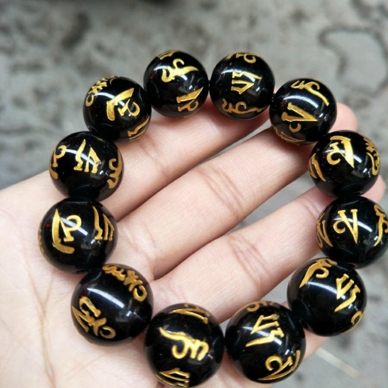 ✨VÒNG TAY ĐÁ MÃ NÃO ĐEN KHẮC OM MANI PADME HUM 16 ly