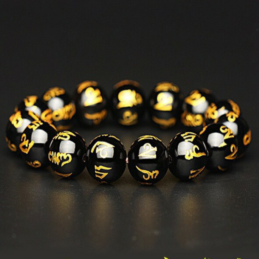 Mua tại TiktokVÒNG TAY ĐÁ MÃ NÃO ĐEN KHẮC OM MANI PADME HUM