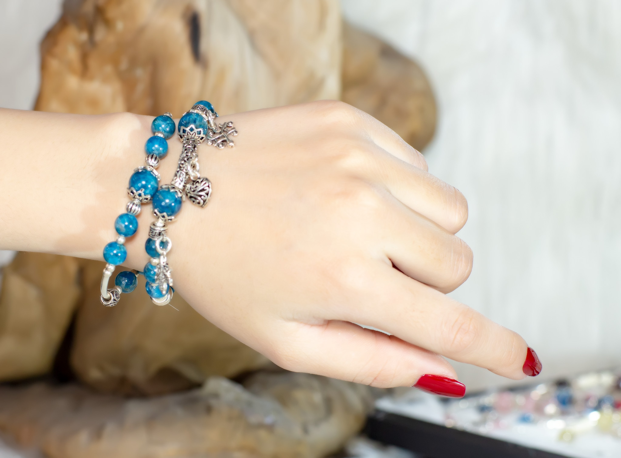 VÒNG TAY ĐÁ CHALCEDONY : Chalcedony sở hữu hoa văn và màu sắc đặc biệt cùng hiện tượng tán sắc vô cùng thú vị, rất ít xuất hiện ở những loại đá khác. Vòng tay Đá Chalcedony charm cây bạc mang đến điềm lành, giúp nuôi dưỡng và ổn định tinh thần lẫn tình cảm ở chủ nhân, là món quà mà bất kì ai cũng mong muốn sở hữu. CÔNG DỤNG VÀ Ý NGHĨA CỦA ĐÁ CHALCEDONY: - Về mặt phong thủy - Chalcedony là viên đá của niềm vui, sự hân hoan và đức tính trung thực ở con người. - Kích thích sự hưng phấn, cảm giác lạc quan, yêu đời ở người đeo, dẫn lối cho họ đến thành công. - Lan tỏa nguồn năng lượng tích cực, giúp chủ nhân thu hút nhiều may mắn và tiền bạc trong cuộc sống. - Về mặt sức khỏe - Chalcedony giúp cân bằng và ổn định cảm xúc, được ứng dụng để phòng chứng trầm cảm, rối loạn tiến đình và một số vấn đề liên quan đến thần kinh khác. - Đeo đá thường xuyên sẽ giúp bạn có giấc ngủ ngon và tràn đầy năng lượng cho một ngày mới. - Hợp mệnh - Chalcedony Xanh phù hợp với người mệnh Mộc (theo tương hợp) và mệnh Hỏa (theo tương sinh). CÁCH BẢO QUẢN SẢN PHẨM: 1. Tránh để vòng tiếp xúc với các hóa chất. Khi mang nên tránh để vòng tay tiếp xúc với hóa chất tẩy rửa mạnh: javen, chất tẩy trắng, axit 2. Tránh va đập mạnh. Là sản phẩm được làm từ đá tự nhiên có độ cứng định, nhưng cũng sẽ vỡ, trầy xước khi va đập mạnh, nên tránh các trường hợp sau: - Không mang vòng khi chơi thể thao và các hoạt động mạnh khác. - Tránh va đập vòng, làm rớt vòng. - Tránh ma sát vòng với các bề mặt sắc cạnh như dao kéo hoặc bề mặt dễ gây trầy xước như xi măng, nền đá nhám, đá sỏi 3. Sử dụng và cất giữ vòng đúng cách. - Có thể tháo vòng khi đi tắm và khi đi ngủ.