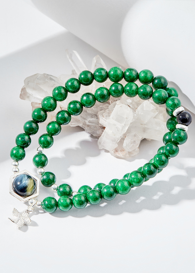 Vòng Thạch Anh Ưu Linh Xanh Phối Hoa Thạch anh xanh Đá Thạch Anh Xanh (Green Aventurine) còn được gọi là “Đá của Cơ Hội”, nó được cho là loại đá mang lại may mắn