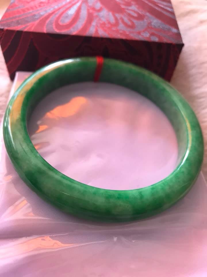 💌Vòng Tay nữ Cẩm Thạch Lý Nở 53mm x Dầy 7,2mm Màu Xanh lá Tươi bóng đều đẹp hợp Nữ mệnh Mộc Hỏa ạ