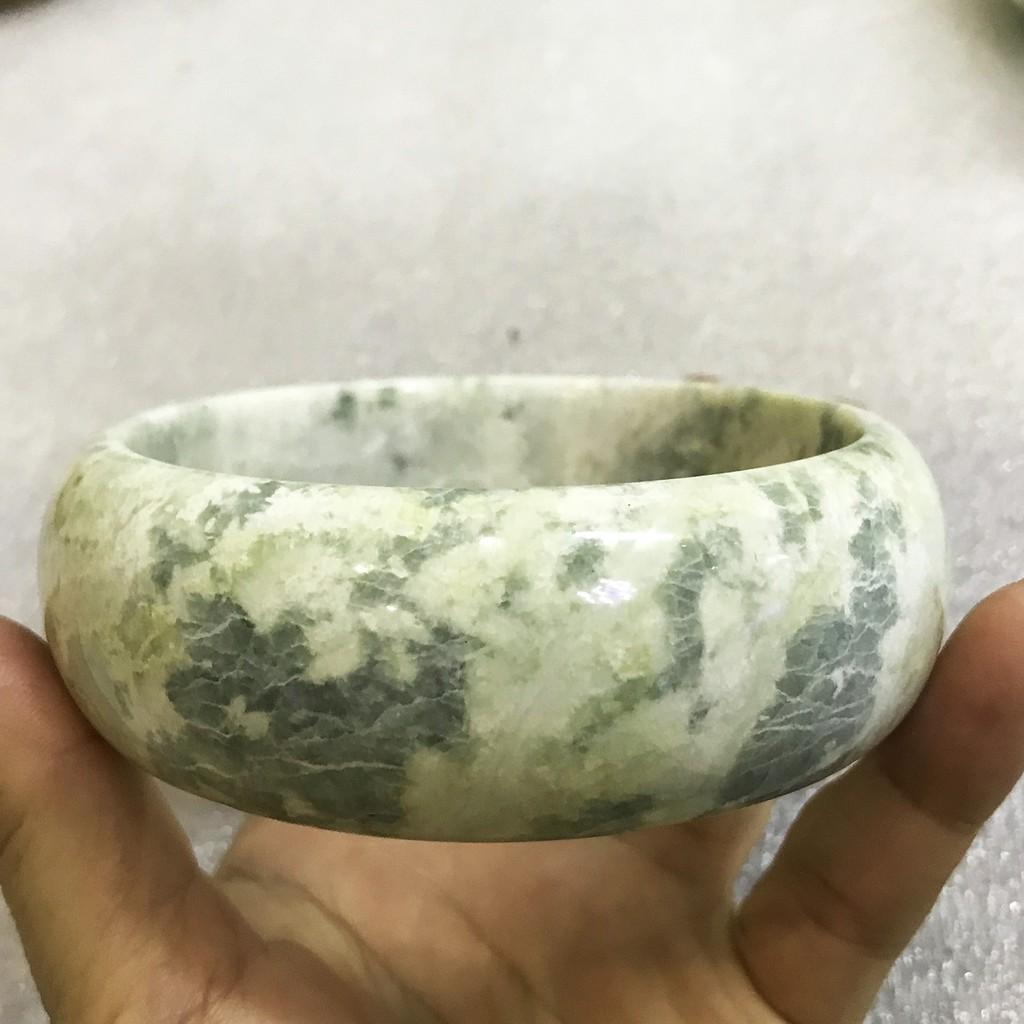 Vòng tay Nữ Đá Cẩm Thạch mới TR Lý 57 mm x cọng 7,5mm Màu Xanh lý tươi trắng 2 bên đều vòng đẹp Nữ 55kg - 64kg đeo đẹp món quà tặng chính mình