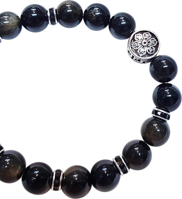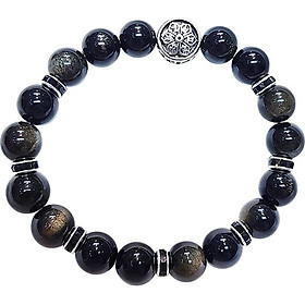 Vòng Tay Nam Đá Obsidian Phối Tỳ Hưu Bạc Mạ Vàng 24K Ngọc Quý Gemstones - Đá thủy tinh núi lửa (Obsidian) là một dạng khoáng vật vô định hình, chúng được hình thành do