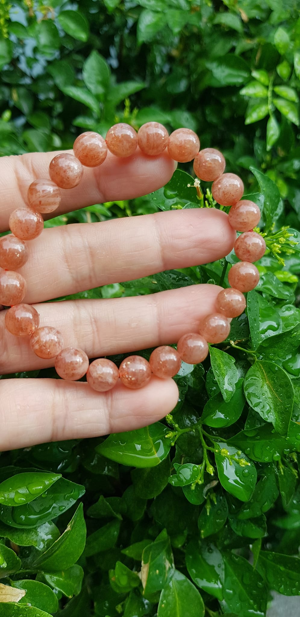 Vòng tay nữ đá mặt trời Sunstone Size 8li / 8mm đẹp màu hồng cam nhẹ nhàng/Hàng Phong Thủy Sunny Q8