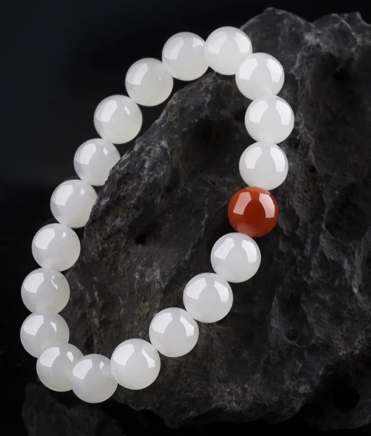 ✨Vòng tay phong thủy, vòng tay may mắn đá mã não trắng mix 1 hạt đá thạch anh đỏ