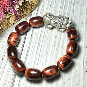 Vòng tay Thạch Anh Mắt Hổ nâu đỏ hạt trụ mix tỳ hưu