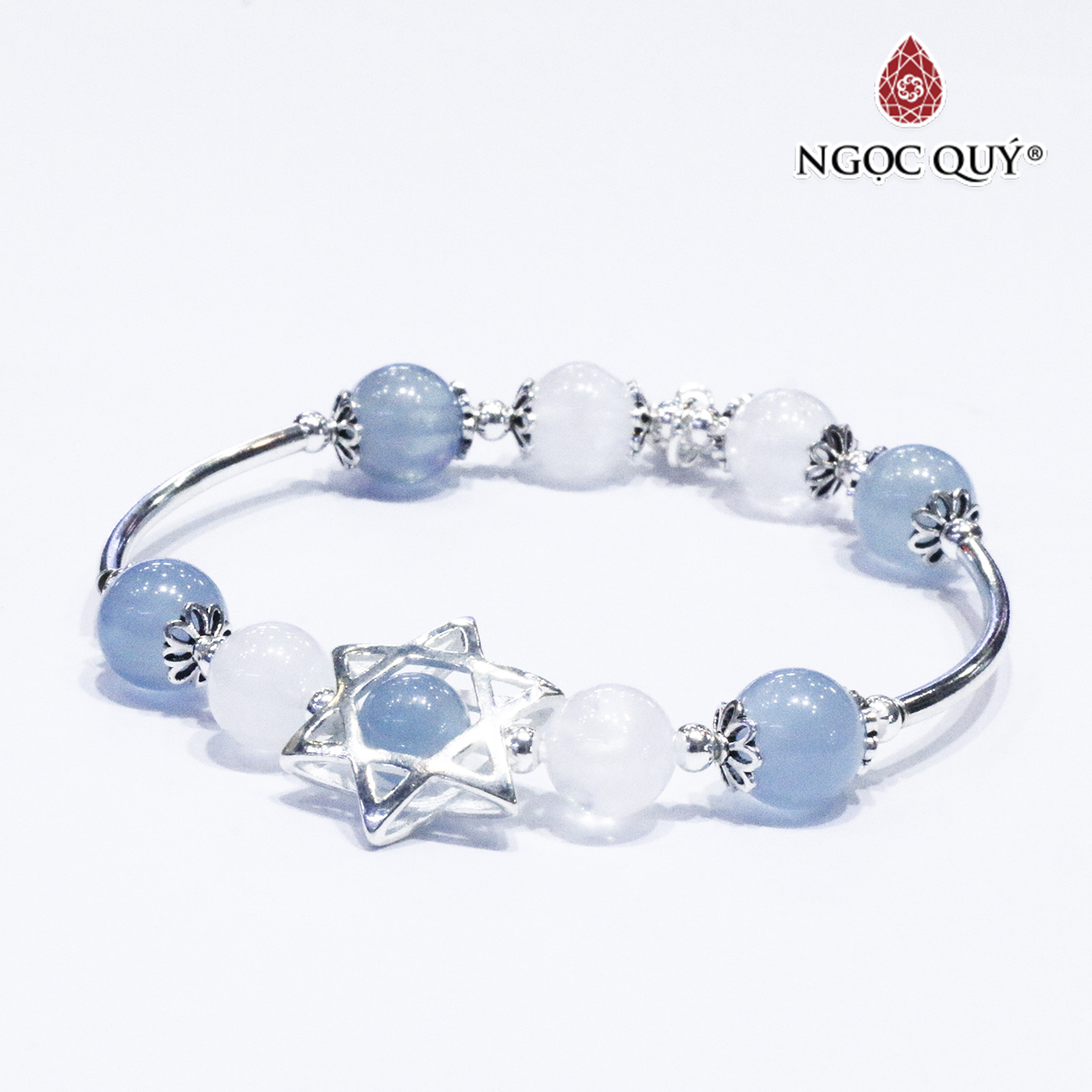 VÒNG TAY THẠCH ANH ƯU LINH TRẮNG PHỐI AQUAMARINE