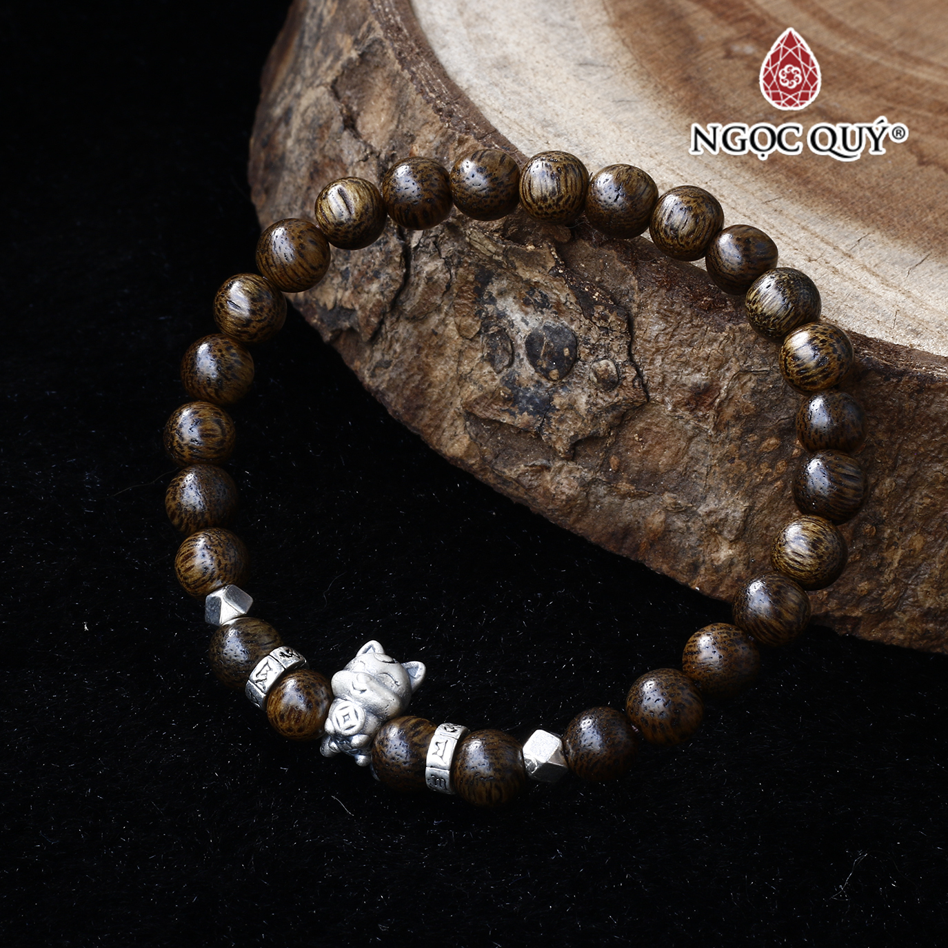 ✨Vòng trầm tốc tròn 6mm phối charm bạc hồ ly - Ngọc Quý Gemstones