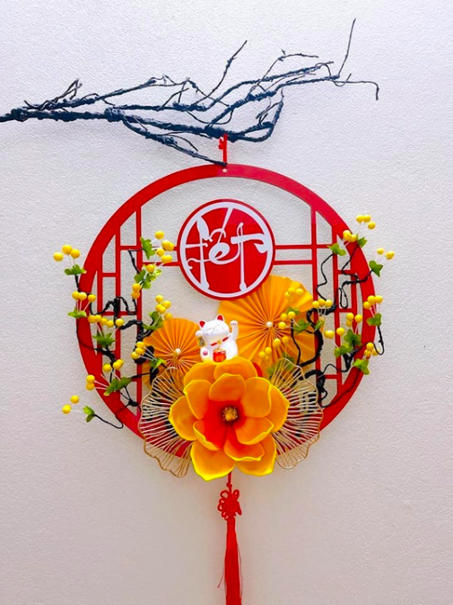 Vòng trang trí Tết - Khung decor hoa -Kích thước 40cm - Cây giả, hoa lụa Decor trang trí nhà cửa Mời bạn ghé thăm gian hàng shop để khám phá các sản phẩm &