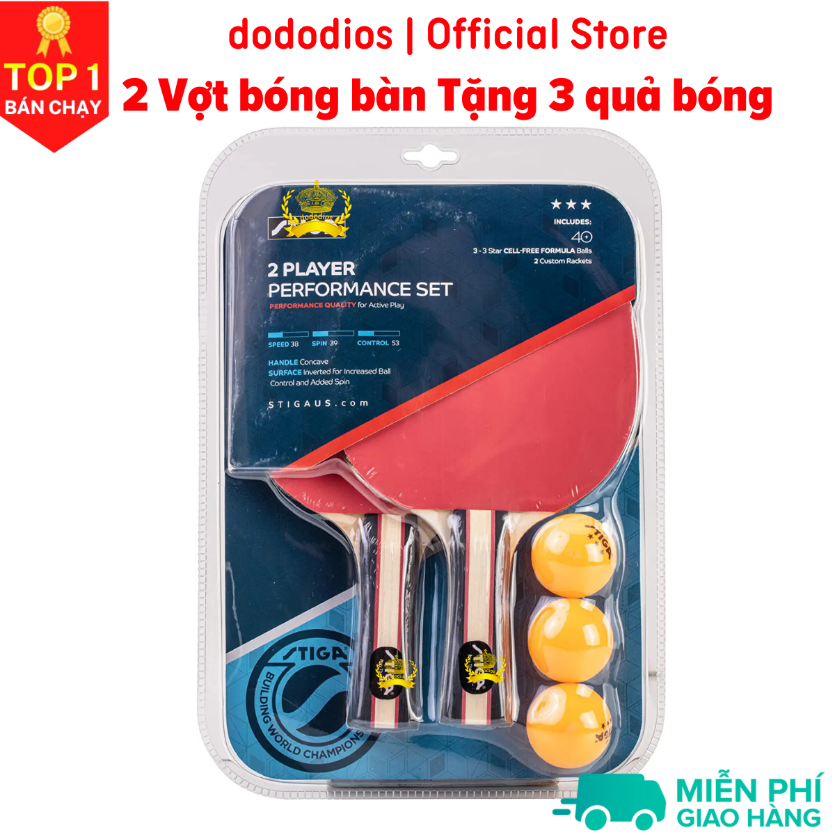 ✨Vợt bóng bàn combo 2 chiếc tặng kèm 3 quả bóng và túi đựng - chính hãng dododios - Thiết kế chuẩn quốc tế