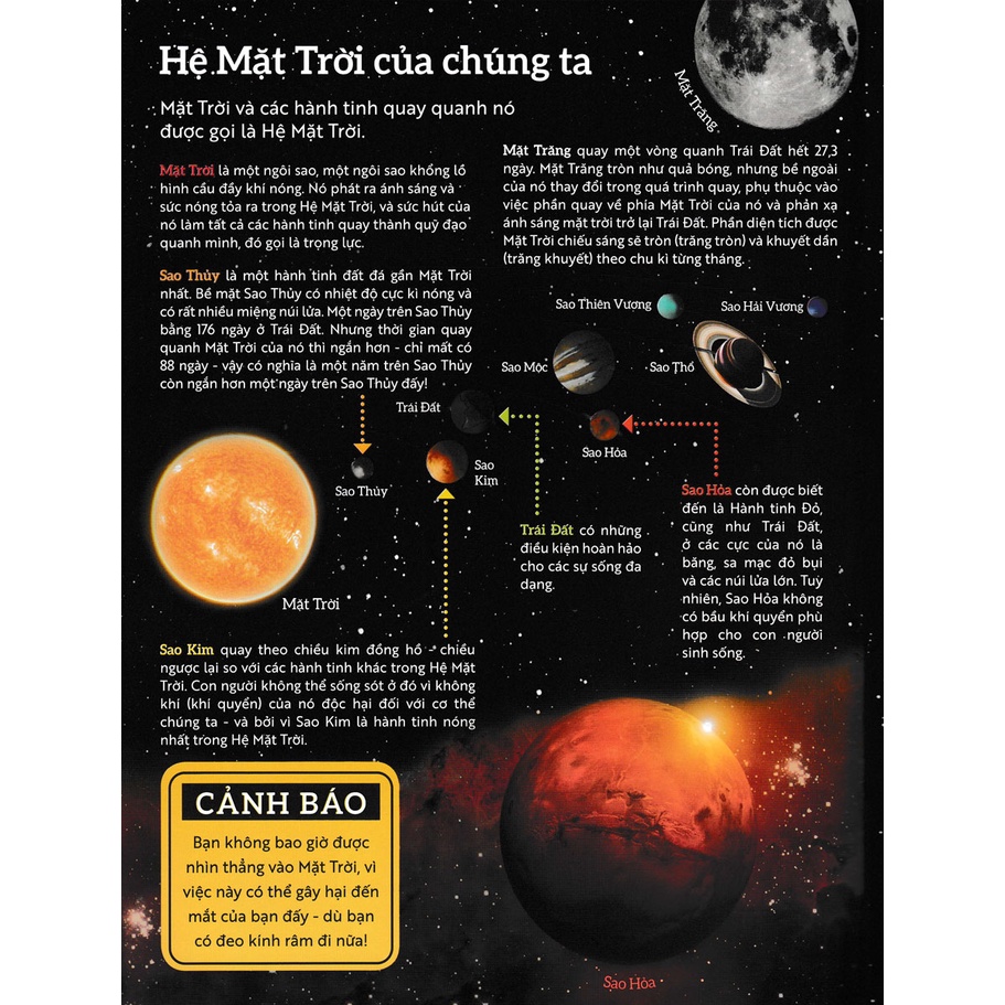 Thả mình vào không gian rộng lớn ngoài Trái đất trong cuốn sách này, bạn sẽ khám phá được nhiều bí mật thú vị từ loài động – thực vật nào bay vào không gian đầu tiên, khái niệm “rác vũ trụ” là gì, những nhà khoa học nào nổi tiếng trong lĩnh vực thiên văn…