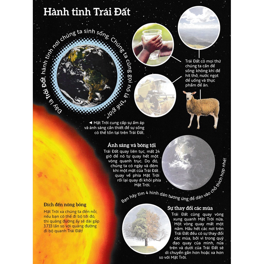 Vũ trụ là một cuốn sách cung cấp những kiến thức khoa học vô cùng bổ ích và lý thú về không gian ngoài Trái đất. Xuyên suốt 12 trang sách, độc giả sẽ được tìm hiểu về các đặc điểm, tính chất của những hành tinh trong Hệ Mặt Trời, dải ngân hà và các chòm sao.