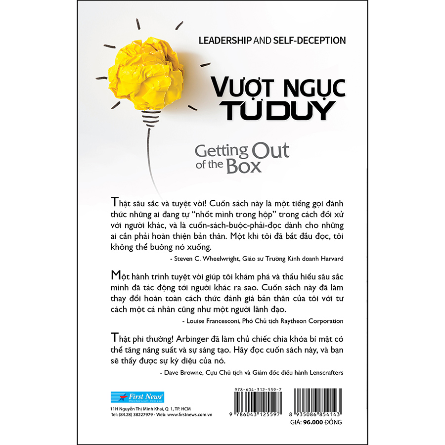 Với hình ảnh chiếc hộp và cách thức chúng ta “tự nhốt mình” hay “thoát khỏi chiếc hộp” là điều bạn có thể nhận ra chính mình trong mọi mối quan hệ, cả trong môi trường công sở và những mối quan hệ gia đình. Không chỉ dừng lại ở đó, quyển sách còn đề cập tới vấn đề sâu xa hơn: nó đưa ra những giải pháp thiết thực để bạn có thể tự giải phóng mình ra khỏi “chiếc hộp” trong cách ứng xử với những người xung quanh, cũng như sự tự lừa dối với bản thân mình. Giải pháp này sẽ giúp các bạn giảm thiểu những mâu thuẫn, tăng thêm niềm hứng khởi, thúc đẩy tinh thần trách nhiệm và nâng cao khả năng đạt được thành công trong tổ chức của bạn. Hơn thế nữa, nó còn giúp bạn cảm thấy hài lòng và hạnh phúc hơn với những gì mình đang có.