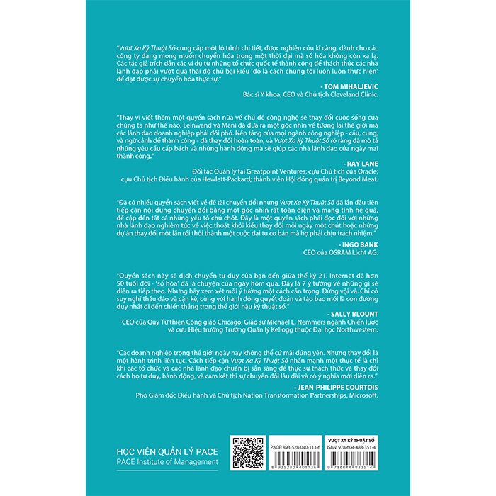 “Đã có nhiều quyển sách viết về đề tài chuyển đổi nhưng Vượt Xa Kỹ Thuật Số đã lần đầu tiên tiếp cận nội dung chuyển đổi bằng một góc nhìn rất toàn diện và mang tính hệ quả, đề cập đến tất cả những yếu tố chủ chốt. Đây là một quyển sách phải đọc đối với những nhà lãnh đạo nghiêm túc về việc thoát khỏi kiểu thay đổi mỗi ngày một chút hoặc những dự án thay đổi một lần rồi thôi thành một cuộc đại tu cơ bản mà họ phải chịu trách nhiệm." - INGO BANK; CEO của O.S.R.A.M Licht AG.