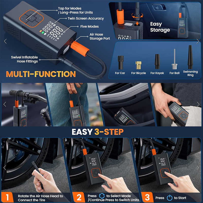 ✨WISEZEN Bơm hơi di động – Sử dụng đa năng, bơm nhanh trong 3 phút, giám sát áp suất lốp an toàn.