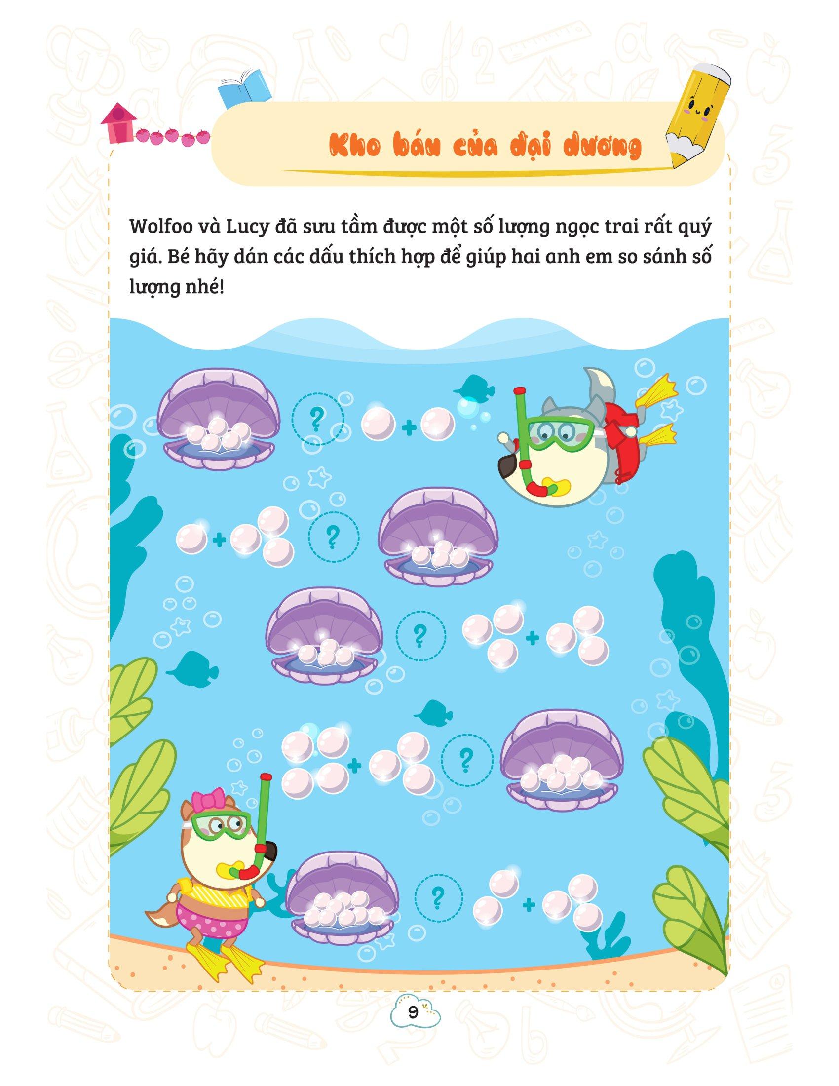 Wolfoo Khám Phá Toán Học Vui - Tập 4 Cuốn sách thuộc trong bộ sách “Wolfoo khám phá toán học vui” gồm 4 cuốn dành trẻ từ 3 đến 6 tuổi. Được thiết kế theo hướng giúp trẻ trải nghiệm, làm quen với những kiến thức toán học cơ bản như: số đếm, phép tính, so sánh và phân biệt các đối tượng, nhận biết hình học cơ bản… Các đơn vị bài học đều được chia thành các chủ điểm kết hợp với các hoạt động thú vị như tập đếm, trả lời câu hỏi, ghép tranh, thực hành với hệ thống bài tập tương tác kết hợp dán sticker, tô màu theo phương pháp từ đơn giản tới phức tạp để giúp trẻ phát triển toàn diện khả năng tư duy logic, suy luận, đánh giá tổng quát và chi tiết từng vấn đề. Hy vọng rằng cuốn sách “Wolfoo khám phá toán học vui 4” sẽ là bộ sách đồng hành hữu ích của các bạn nhỏ trên hành trình chinh phục và khám phá toán học và phát triển toàn diện khả năng tư duy sớm.