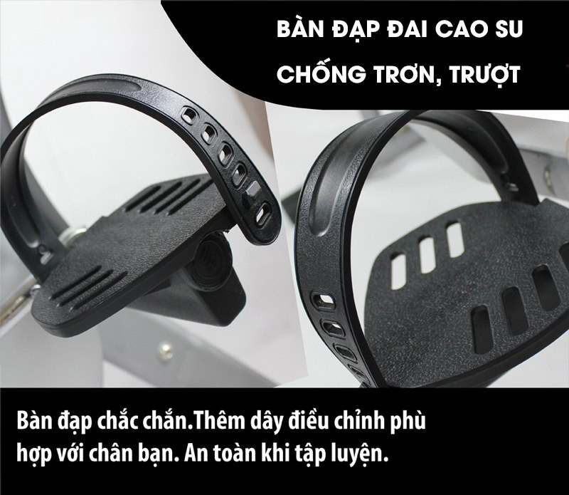 • Bàn đạp xe đạp tập thể dục kết hợp tay chân: được làm từ cao su chất lượng cao và có quai cố định chân êm ái và chắc chắn hơn trong quá trình luyện tập.