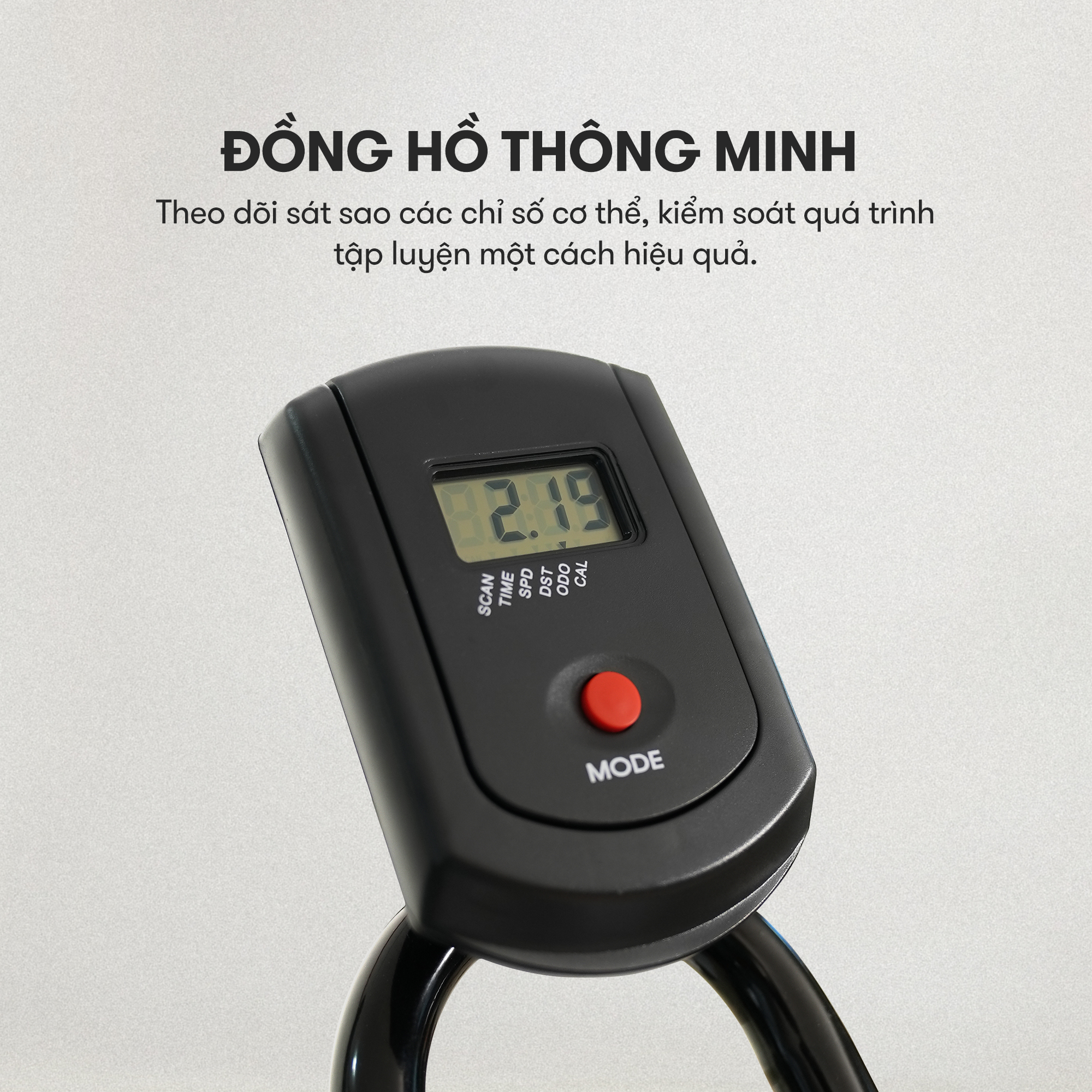Trọng lượng tối đa người sử dụng: 125kg Cốt thanh tay cầm và yên xe bằng crom Màn hình LED hiển thị trực quan, dễ dàng quan sát Trang bị giá đựng chai nước và