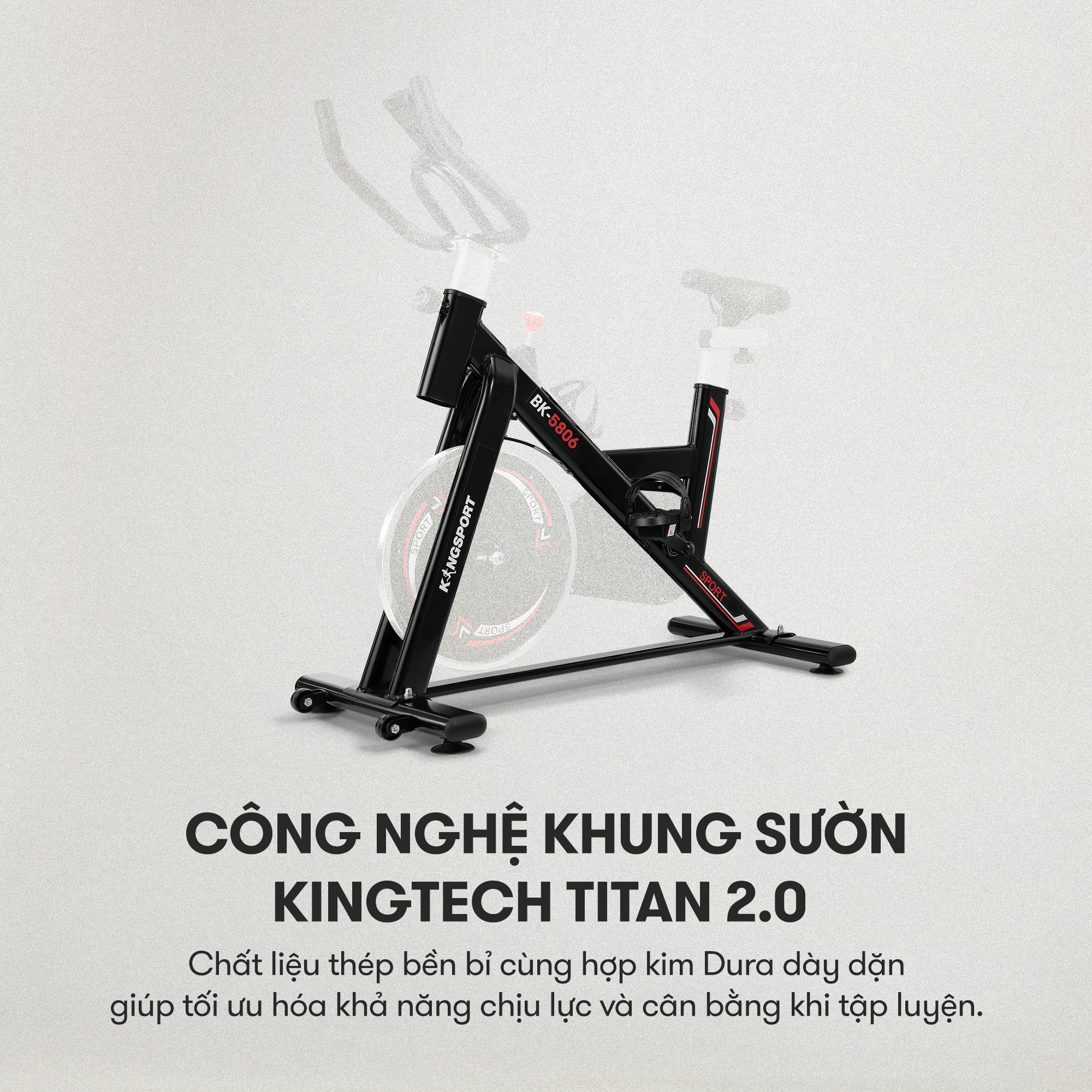 Chiếc xe đạp thể thao BK5806 với khung thép chịu lực không gỉ cứng cáp, đảm bảo vận hành ổn định trong thời gian dài. Từng chi tiết thiết kế, lắp ráp được làm tỉ mỉ, cẩn trọng, cả nhà an tâm luyện tập hàng ngày với cường độ cao mà xe vẫn luôn chạy êm như mới.