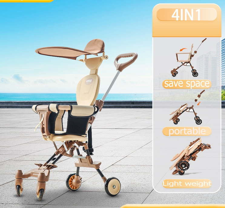 Ghế ngồi xoay được 2 chiều, cả 2 chiều đều có ghế để chân tiện lợi kèm đai an toàn