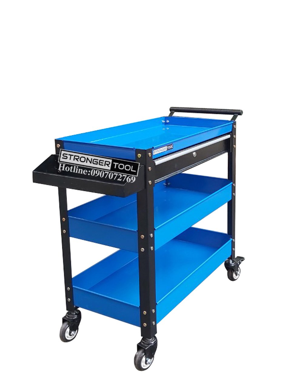 Xe đẩy đựng dụng cụ 3 ngăn, 1 ngăn kéo có khóa