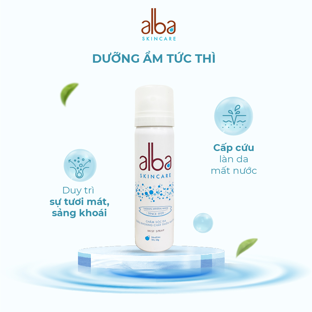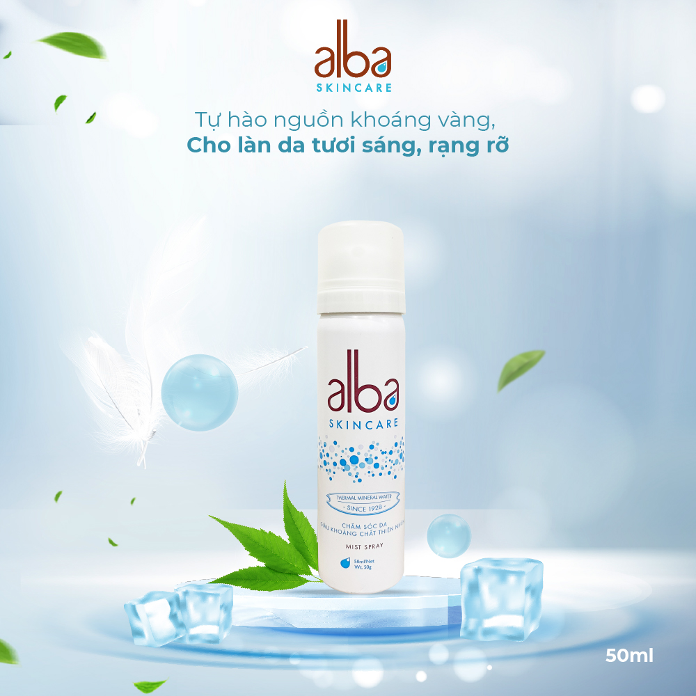 - GIỚI THIỆU SẢN PHẨM Alba Skin Care mang đến dòng xịt khoáng giàu khoáng chất, giúp cấp ẩm tức thì, chống lão hóa và nuôi dưỡng làn da khỏe mạnh. Được chiết xuất từ nguồn nước khoáng nóng Thanh Tân (Thừa Thiên Huế) quý giá, sản phẩm giúp phục hồi và bảo vệ làn da, cấp nước tức thì hạn chế tình trạng da khô ráp do tác động trực tiếp từ môi trường.