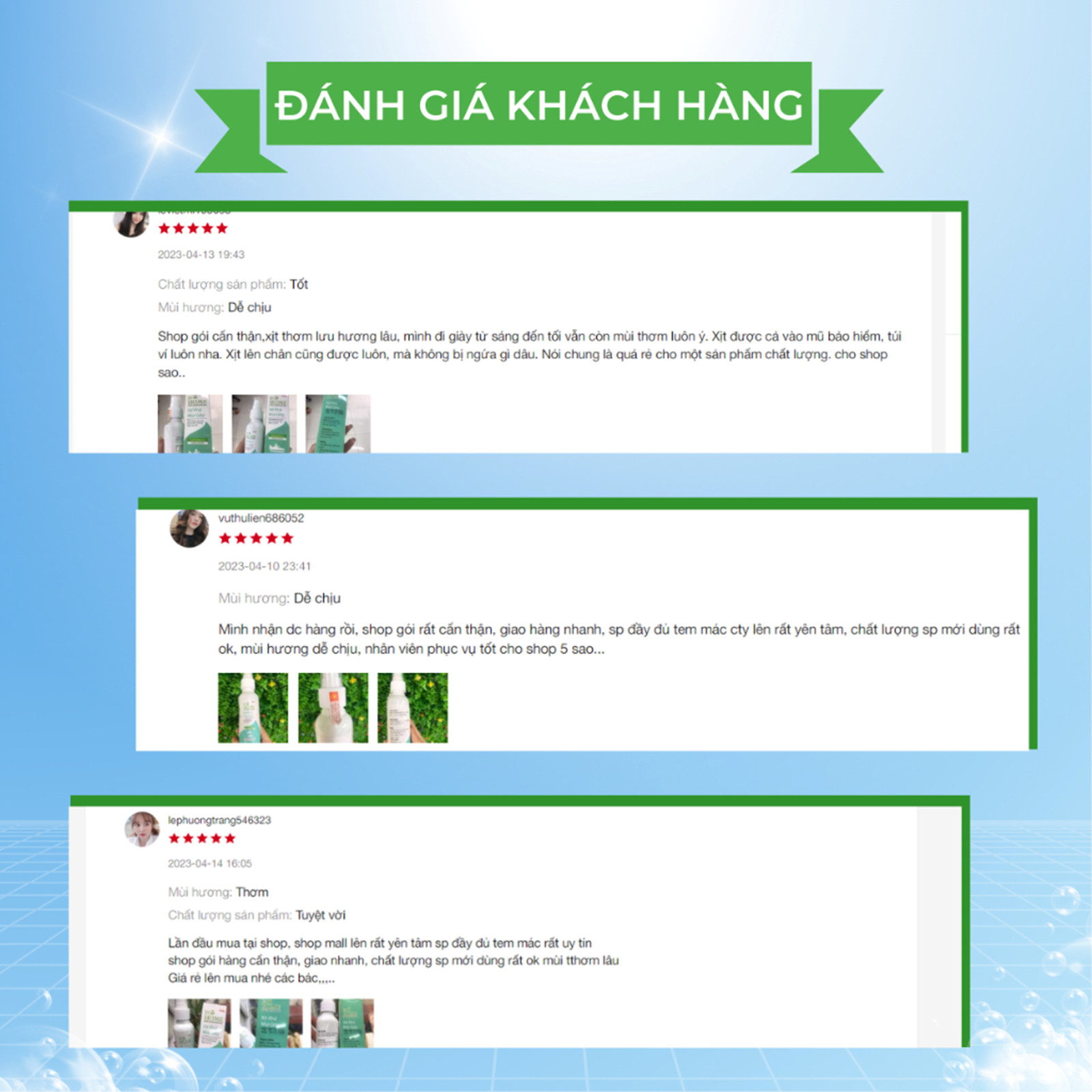 - Khử mùi giày, mùi hôi chân, mũ bảo hiểm. Giúp đôi chân luôn thoáng mát, sảng khoái, ngăn ngừa vi khuẩn gây mùi. HƯỚNG DẪN SỬ DỤNG: