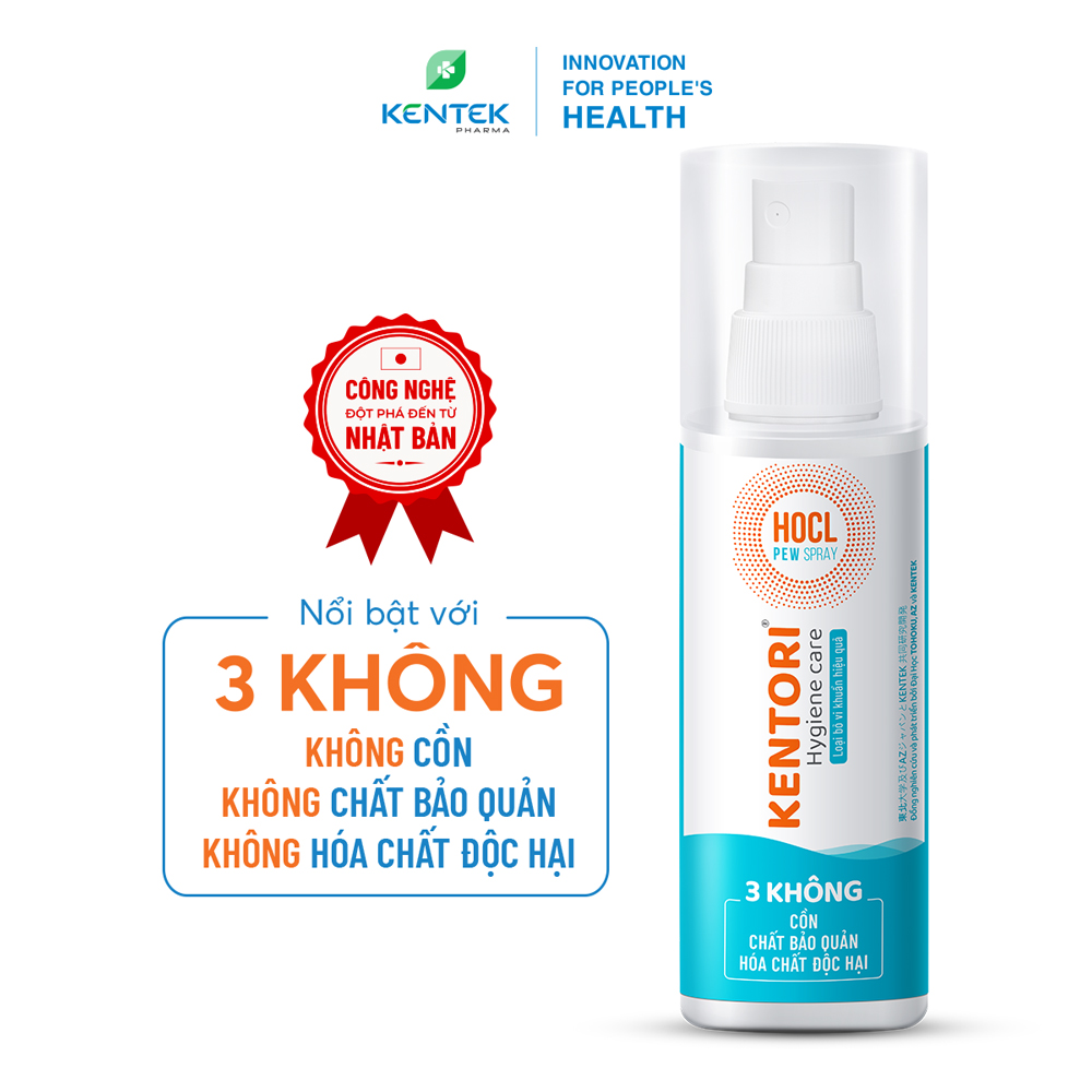 AN TOÀN: Kentori Hygiene Care là dung dịch xịt kháng khuẩn với hoạt chất chính HOCL được sản xuất từ công nghệ điện phân 3 màng ngăn tiên tiến nhất Nhật Bản, được Viện Nghiên cứu Y tế Noguchi Nhật Bản khuyến nghị sử dụng vì an toàn và chất lượng, có thể sử dụng thường xuyên.