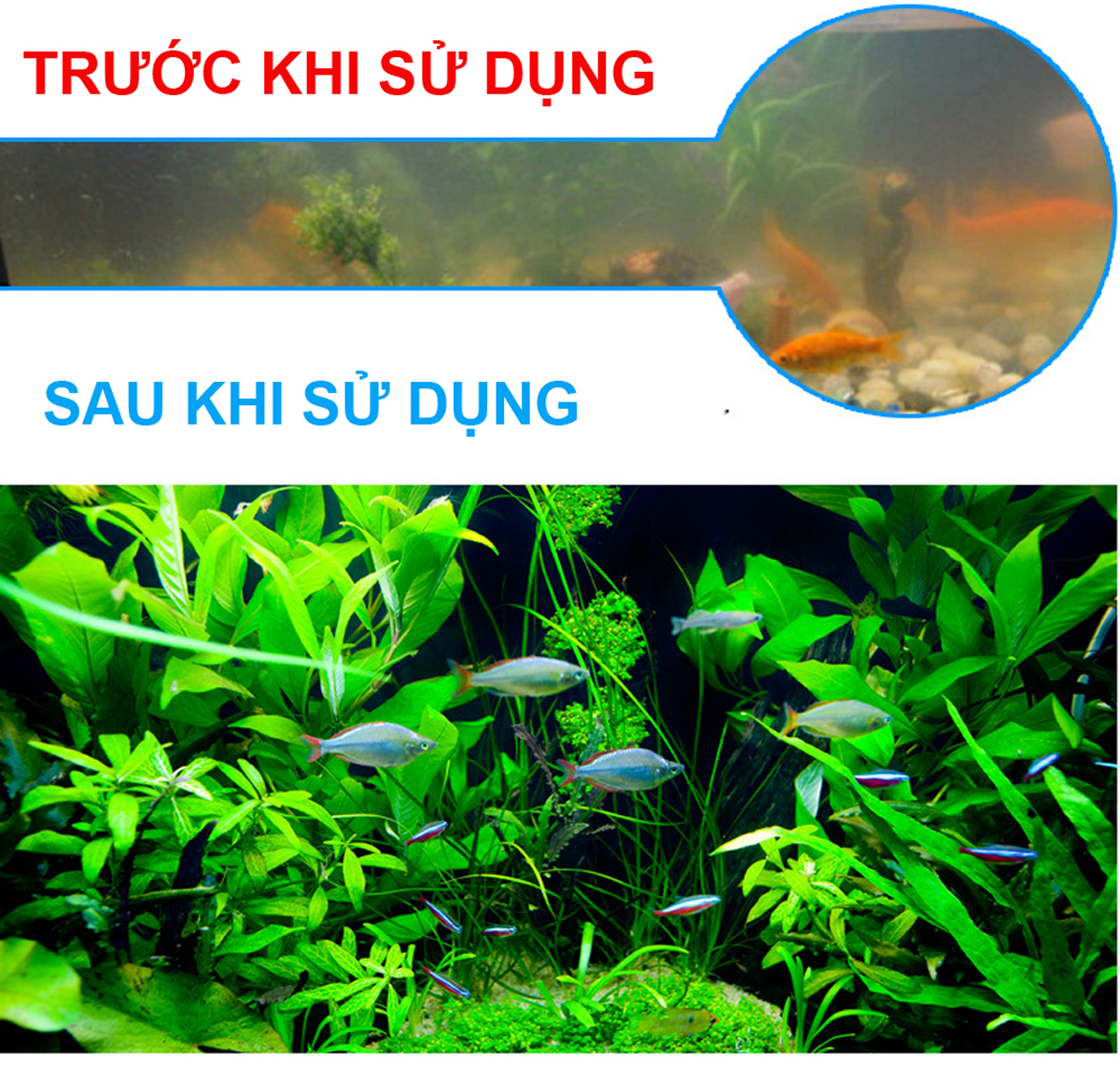 - Hỗ trợ nhanh và ổn định màu nước, đặc biệt là trong điều kiện ao bị rớt tảo sau mưa. - Lắng đọng phù sa lơ lửng và các kim loại nặng. - Làm