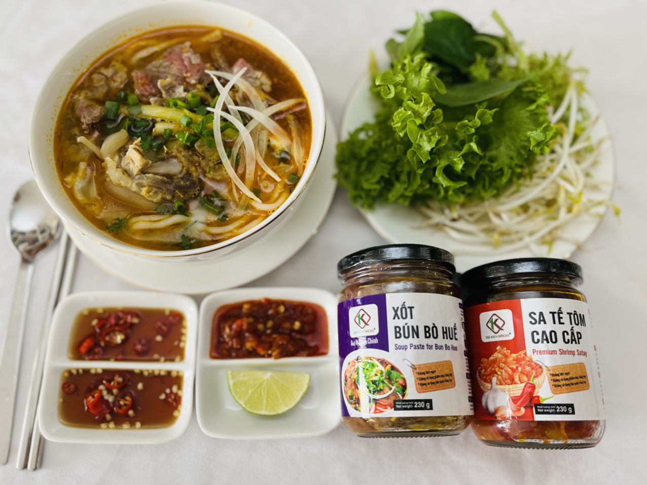 - Hướng dẫn sử dụng: Dùng làm gia vị chế biến món bún bò Huế. Phần ăn dành cho 6 người: Bước 1: Hầm 3 lít nước với thịt, xương hoặc giò và khoảng 3 cây sả đập dập khoảng 30 - 45 phút. Bước 2: Cho 230 g Xốt Bún Bò Huế vào nồi. Bước 3: Hầm nhỏ lửa thêm 10-15 phút Bước 4: Cho sợi bún ra tô, xếp thịt, xương, giò đã luộc lên tô, chan nước dùng vào tô Mách nhỏ: Ăn kèm: