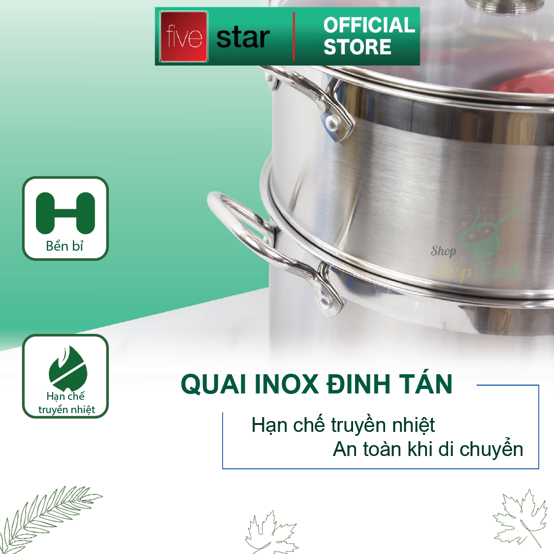 ✨Bộ nồi xửng hấp inox cao cấp Fivestar 3 đáy từ nắp kính tặng 2 muỗng canh